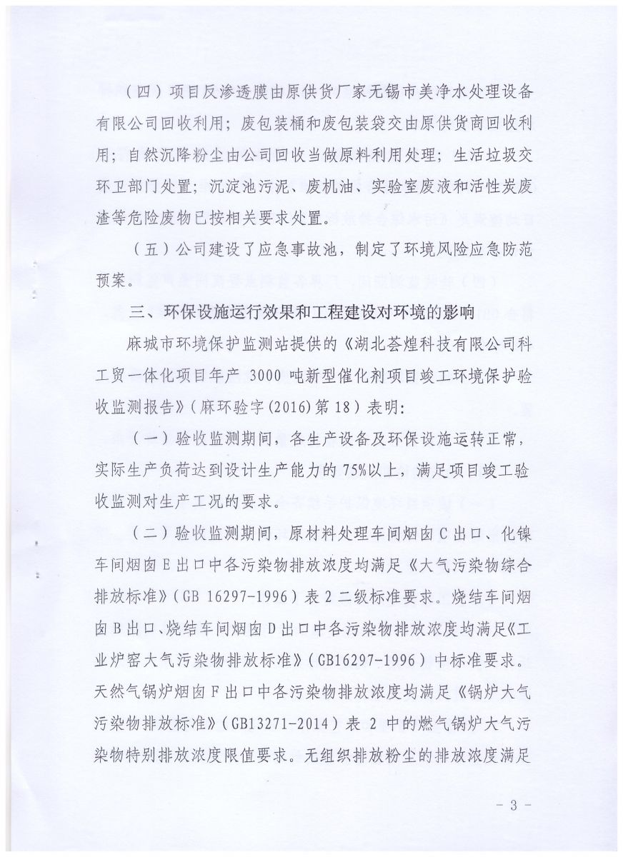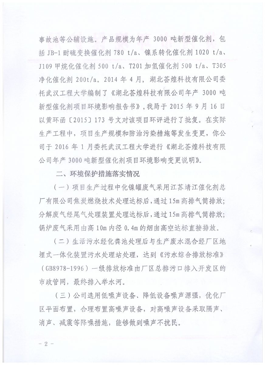 市環(huán)保局對湖北薈煌科技有限公司項目竣工環(huán)境保護驗收批復(fù)