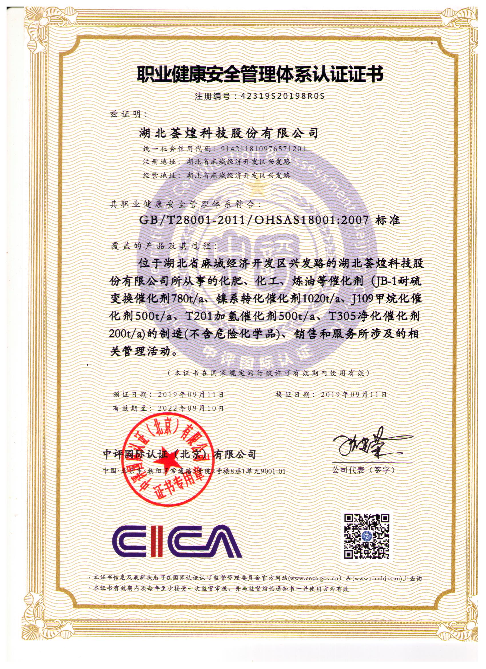 職業(yè)健康安全管理體系認(rèn)證證書
