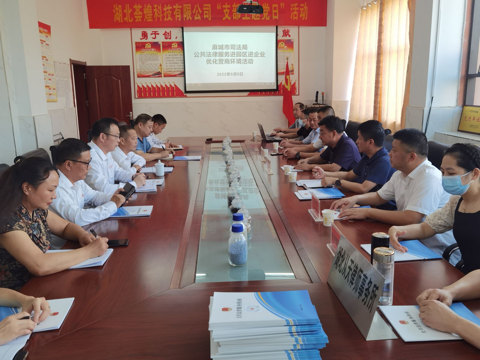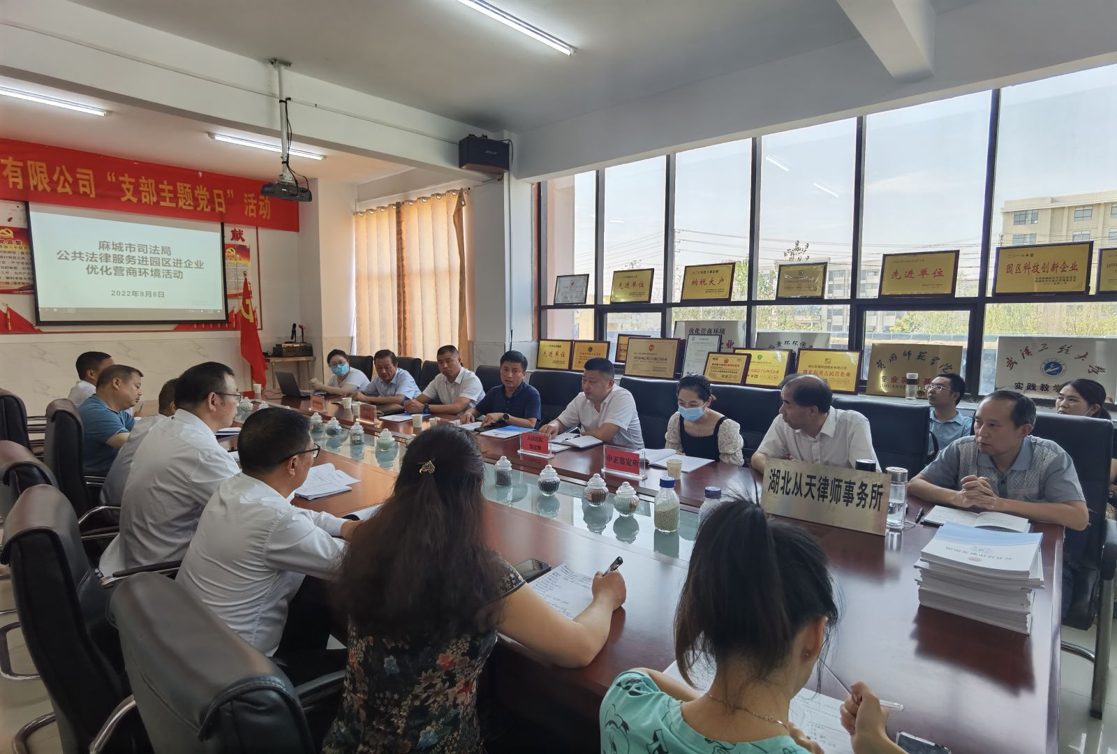 2022年9月8號,由麻城市司法局、麻城市法制辦公室、麻城市公證處、麻城市法律援助中心、人民醫(yī)院鑒定所、中正鑒定所、從天律師事務所組成的團隊來到薈煌科技,開展法治體檢、普法宣講活動。